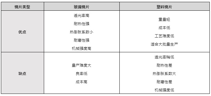 圖表11. 玻璃鏡片和塑料鏡片特點(diǎn)對(duì)比