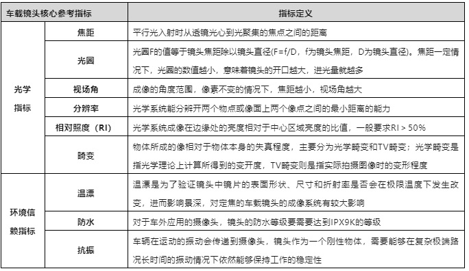 圖表18. 車載鏡頭核心參考指標(biāo)