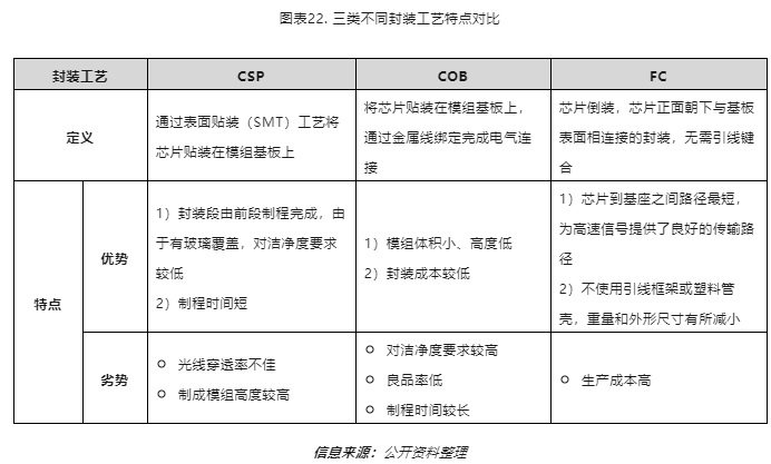 隨著車載攝像頭模組不斷地向高清化、小型化趨勢(shì)發(fā)展,車攝像頭模組封裝工藝也在逐步升級(jí)。目前,車載攝像頭模組還是以CSP封裝模式為主,即通過表面貼裝(SMT)工藝將芯片貼裝在模組基板上。綜合技術(shù)需求和成本因素的考量,對(duì)于5MP及以上的高分辨率攝像頭,車載攝像頭模組廠商會(huì)逐步采用通過金屬線綁定將芯片貼裝在模組基板上的COB封裝技術(shù)。