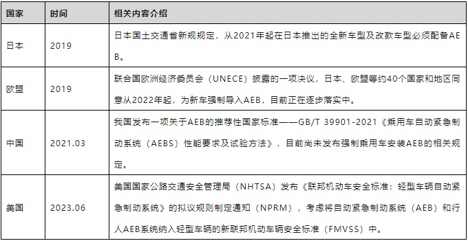 圖表24. 全球主要國(guó)家AEB相關(guān)法規(guī)政策情況