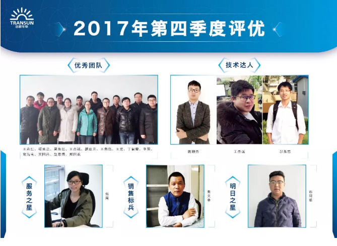1月16號,第四季度優(yōu)秀員工評選活動已圓滿落下帷幕。經過篩選,一批優(yōu)秀員工登上了光榮榜:優(yōu)秀團隊車聯網研發(fā)部、技術達人姚顧杰、王杰誠、鄔燕忠、服務之星張南、銷售標兵朱文林、明日之星石珂維,在此,我們一睹他們的風采。