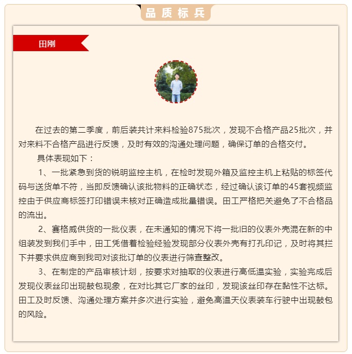 2023年第二季度評優(yōu) —— 品質(zhì)標(biāo)兵
