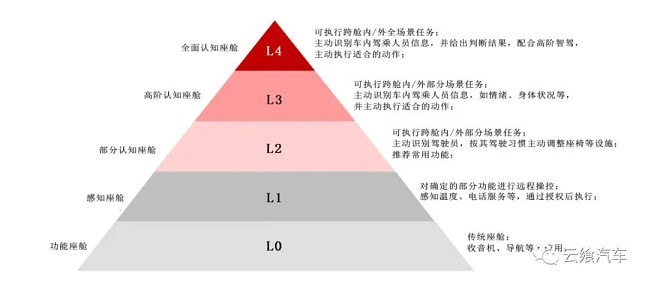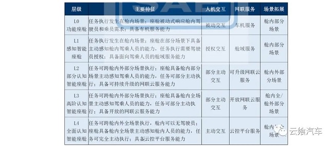 在業(yè)內相關機構的聯合牽頭下,其對智能座艙進行了分級,此雖并非行業(yè)標準但該舉措對于量化智能座艙的功能、統(tǒng)一并提升相關企業(yè)的開發(fā)水平有著一定作用。