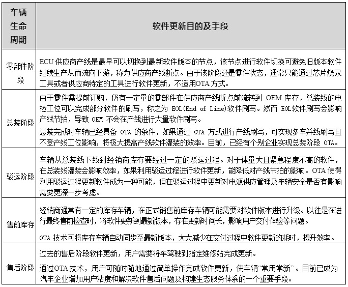 表 2-1 車(chē)輛生命周期維度的軟件更新應(yīng)用